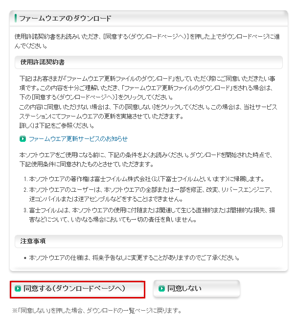 次に「同意する(ダウンロードページへ)」を押します