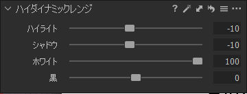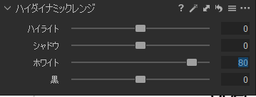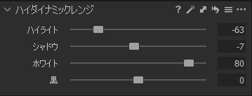 ホワイトはハイライトと違って、アンダー気味にとった写真であれば数値をプラスに振り切っても白飛びを起こさない特徴があって、メリハリの無い写真に対してメリハリを加える事ができる。