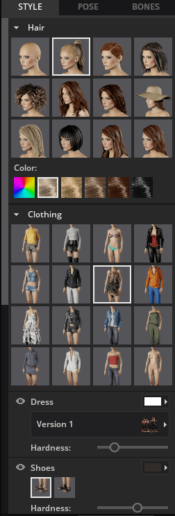 またモデルの設定項目も多岐にわたり調整可能になっただけでなく、それぞれのパラメータを操作、アイテムを追加・変更した時のグラフィックも以前より自然になっています。(ソフトウェア上でスクロールバーを移動させないとこれ以上下がキャプチャ出来ないのですが、実際には表示されていない設定項目もあります)