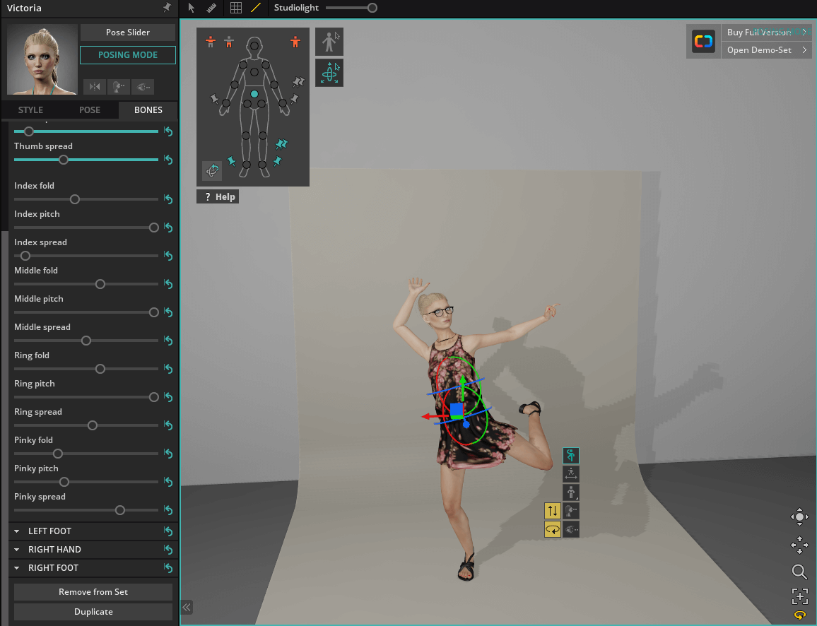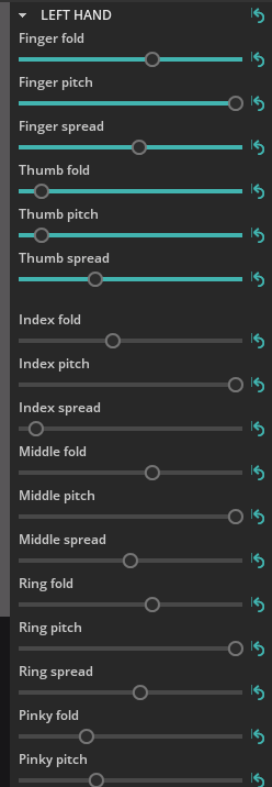 また手の開き具合、足の開き具合の調整なども細かいパラメーター上で行えるようになっているのは良いです。